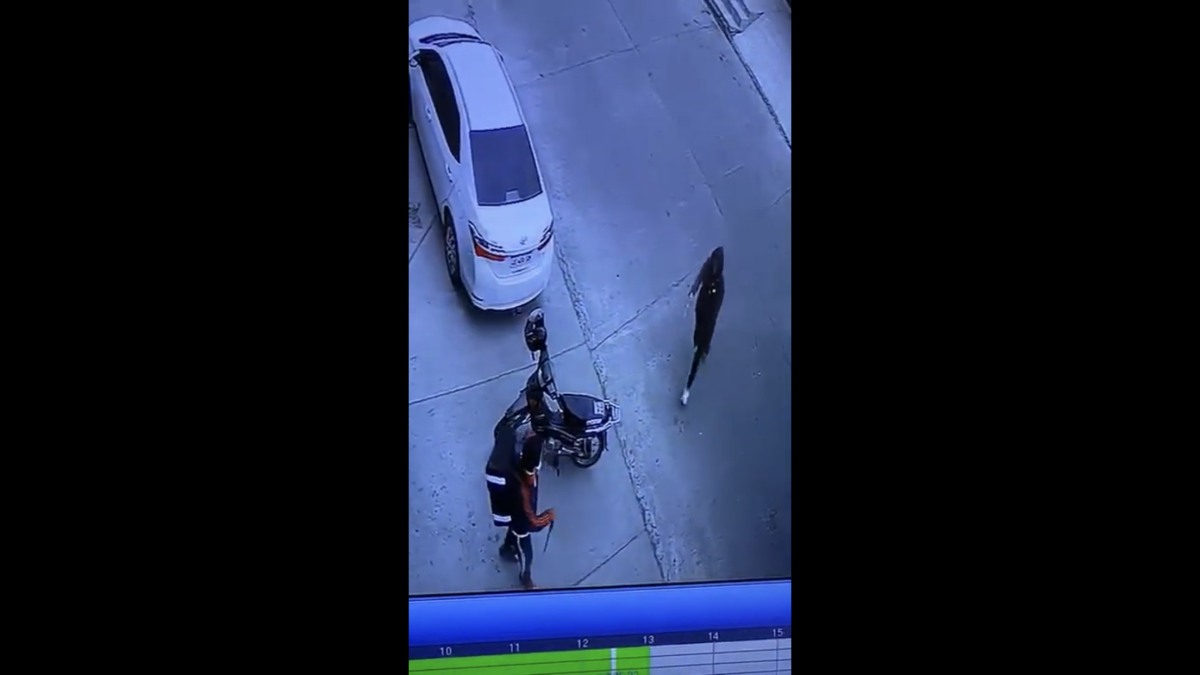 El asalto a un cadete que trabajaba en la calle quedó registrado por la cámara de seguridad de un negocio en el mediodía de este miércoles en barrio Belgrano.