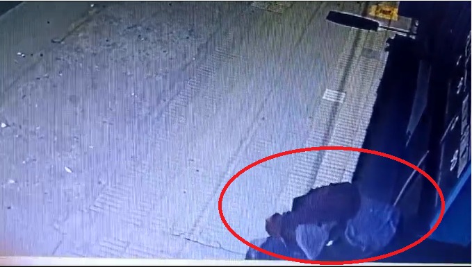 El hombre se sentó en la vereda junto al medidor, sacó una herramienta de su mochila y rompió la protección del medidor. Después, agarró el medidor y huyó, dejando que el agua se desperdiciara por la vereda.