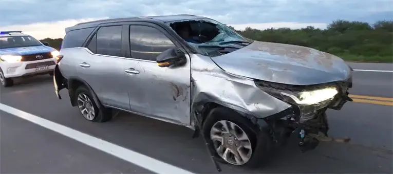En un video publicado por el periodista José Inesta, se ve el estado del vehículo marca Toyota, que fue trasladado desde el lugar del siniestro arrastrado por un tractor, con todo el frente destrozado y sólo sobre sus llantas, ya que las cubiertas quedaron destruidas.