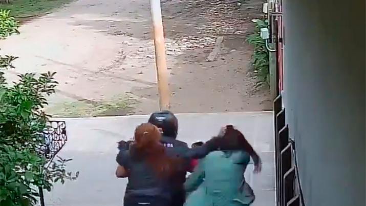 De acuerdo a las imágenes que registraron el robo, como ella se resistió, la mujer la tomó del cabello y comenzó a arrastrarla por la vereda y la calle mientras el hombre aceleraba con la moto y, tras golpearla en la cabeza, lograron sustraerle el teléfono y la arrojaron en medio de la calzada.