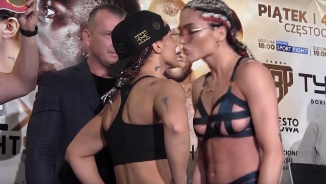 Con una indumentaria provocativa y unas gafas a tono, la europea dejó helada a su rival frente a las cámaras de la televisión. El “piquito” no le gustó a la púgil de Chubut, que reaccionó con una cachetada. Brodnicka le respondió con un golpe de puño en la cara.