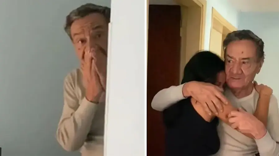 La joven le pidió discreción a su abuela y fue caminando hasta el pasillo que conectaba el comedor con la pieza de su abuelo. En ese momento, lo llamó y él no podía creer que estaba viendo a su nieta nuevamente después de dos años.