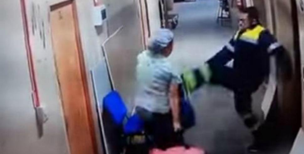 En las imágenes puede verse a un paramédico golpeando salvajemente a su pareja, que está embarazada, hasta llegar incluso a patear su vientre.