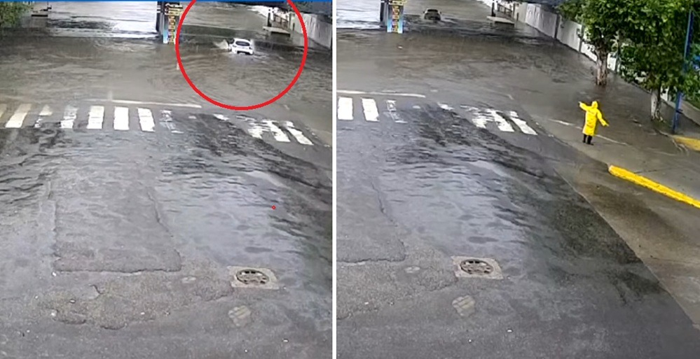 El episodio quedó registrado en un video que muestra cómo, en medio de la tormenta, el automovilista decide ingresar al bajo nivel, una zona que históricamente se inunda durante lluvias intensas. En pocos segundos, el agua rodeó casi por completo al vehículo y dificultó su avance.