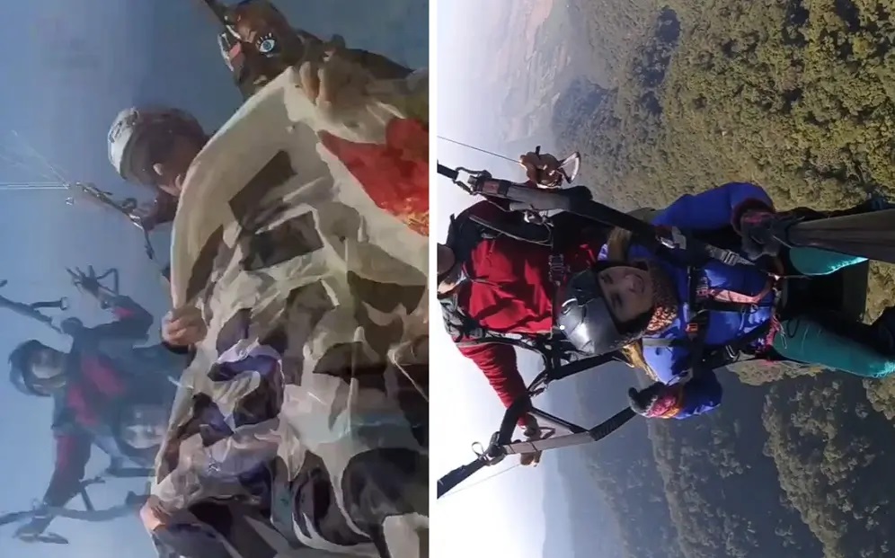 Sebastián quería proponerle casamiento a Lili desde las alturas, y decidió que la mejor manera de hacerlo era desplegando una bandera mientras los dos se encontraban separados por solo un paracaídas.