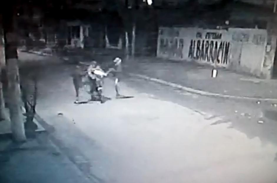 Dos delincuentes violentamente le roban la moto a un joven. En el video que compartio un usuario en la red social Facebook, se puede ver como los ladrones empujan de la moto al conductor y luego comienzan a apedrearlo porque la victima se resiste. El violento hecho sucedió en Las Talitas, barrio Pablo VI.