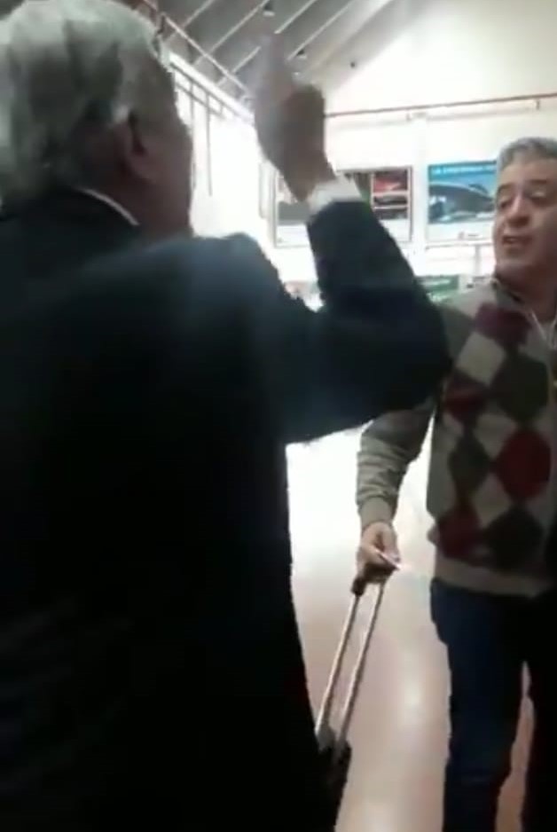 Cuando estaba por arribar a su avión un hombre sacado lo insulto diciéndole que se va que no vuelve más, lo acusó de mentiroso y ladrón ,”no puedo mas, no puedo mas” le gritaba el hombre mientras lo señalaba con el dedo.