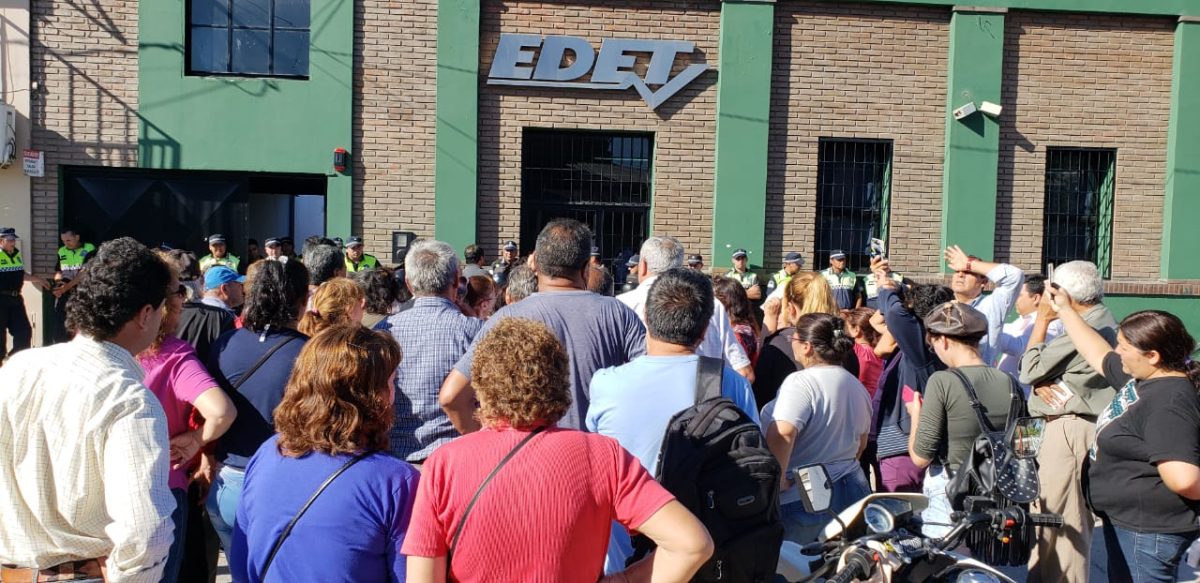Usuarios autoconvocados de la empresa EDET tuvieron este miércoles una nueva jornada de protesta, reclamando por los aumentos en las tarifas registrados durante los últimos meses. En la capital, la concentración fue en las puertas de la casa central de la compañía, en avenida Avellaneda y Amadeo Jacques. También estuvo presente representantes del Partido de Izquieda y de Fodecus.