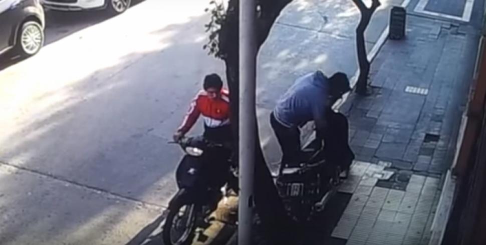 Lo sorprendente del accionar de los delincuentes fue la tranquilidad con la que se detuvieron junto al vehículo y, luego de comprobar que nadie los observaba, arrancaron rápidamente la motocicleta y se marcharon.