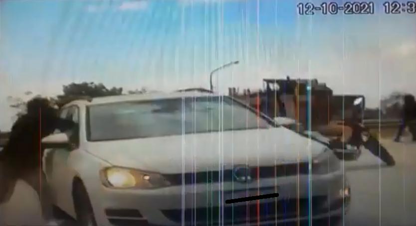 Tres cámaras de seguridad que están ubicadas en el lugar lograron captar todo lo ocurrido y en el video se logra observar como dos sujetos a bordo de una motocicleta esperan el momento para atacar, uno de ellos se baja del rodado, rompe la ventanilla del acompañante con un golpe y se lleva lo mencionado.