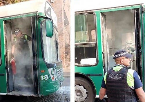 El fuego, que aparentemente fue causado por un cortocircuito en el tablero ubicado sobre el asiento del chofer, fue controlado rápidamente por dos policías que usaron el matafuegos del vehículo.