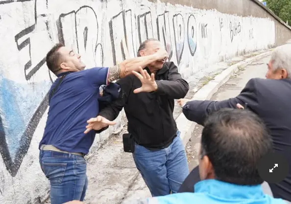 El ministro de Transporte bonaerense, Jorge D’Onofrio, que lo acompañó al corte de tránsito en General Paz y Ruta 3, en Lomas del Mirador, no ocultaba su cara de terror mientras agredían al militar retirado y él pretendía parar la andanada de golpes.