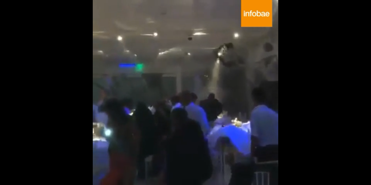 Así, mientras la música seguía sonando, la mayoría de los invitados intentó resguardar sus pertenencias del agua y de un posible extravío. Además, todos intentaron encontrar algún refugio, con el fin de no ser golpeado por alguno de los objetos que volaban por el lugar.