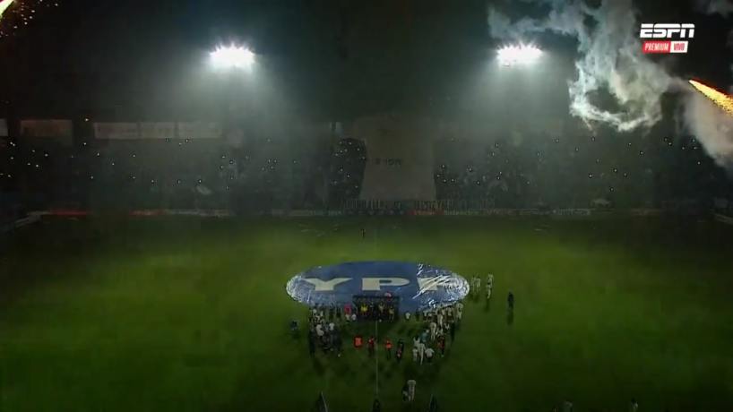 Luces que se prenden y apagan, celulares que se encienden, paraguas Celestes y Blancos, de qué otro color. El Monumental José Fierro se pone de pie y se paralizan los corazones Decanos. A pesar del agua, explotan los fuegos artificiales y todos a cantar.