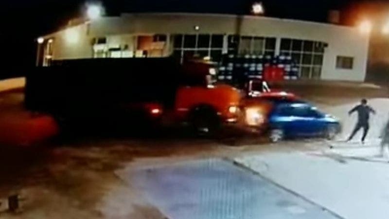 La alocada agresión fue captada por una cámara de seguridad, que tomó imágenes del violento episodio ocurrido en la estación de servicio en el ingreso del barrio Villa Güell, en Media Agua. En esa secuencia se ve cómo aparece el camión Mercedes Benz y embiste directamente al Chevrolet Corsa, que permanecía estacionado frente a una bomba de nafta. El dueño del coche con otra persona sólo atinaron a alejarse.