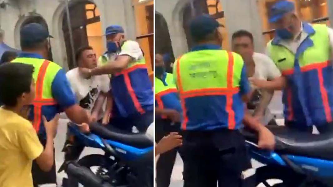 En el video, se observa como el infractor se niega a abandonar su motocicleta mal estacionada y tiene que ser repelido a golpes por los agentes municipales. “Está mi hijo, soltáme. Me están haciendo pasar un mal momento”, se queja el infractor. Hacia el final se nota como escupe a uno de los agentes.