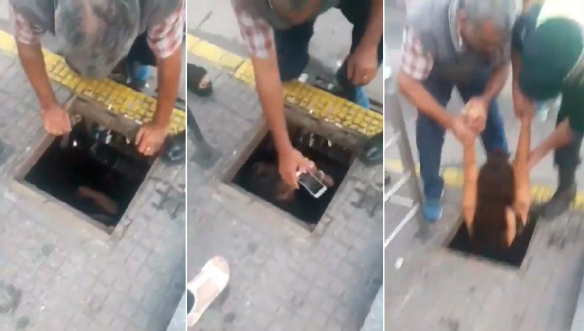 Video Viral: Su teléfono cayó en una alcantarilla y ella entró a buscarlo