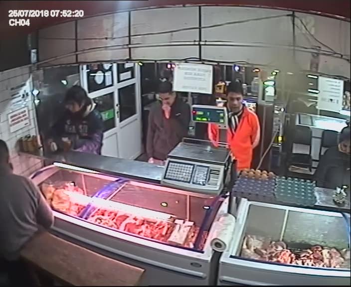 En el vídeo se nota claramente como tres delincuentes comienzan a ingresar de apoco a la carnicería ubicada sobre el pasaje las Rosas sin número del Barrio IMA en Villa Carmela, Cebil Redondo, departamento Yerba Buena.