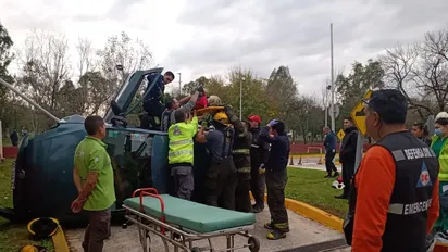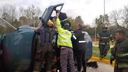 “La señora se puso nerviosa al efectuar una maniobra y, por ese motivo, impactó contra un cantero y una luminaria. Eso produjo que girara con su vehículo y quedase apresada dentro”, expresó el director General de Defensa Civil, Rodrigo Patiño.