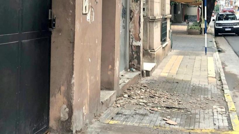 Este domingo por la mañana, personal de Defensa Civil de San Miguel de Tucumán intervino en barrio Norte, en el centro de la ciudad, tras recibir una denuncia de vecinos por el desprendimiento de mampostería en un edificio ubicado en calle Monteagudo al 400.